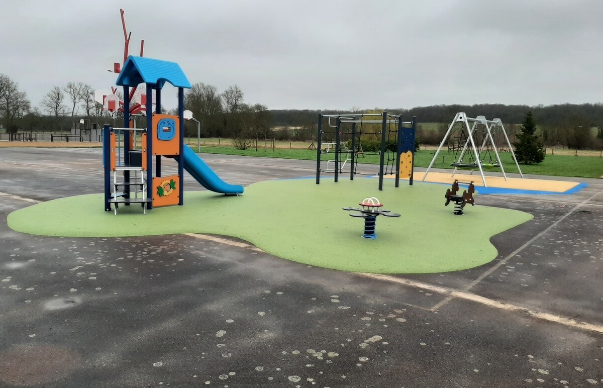 Implantée sur l’ancien court de tennis, derrière la salle polyvalente, cette nouvelle installation redonne vie à cet espace en le transformant en un lieu de rencontre, de détente et de partage pour les familles.