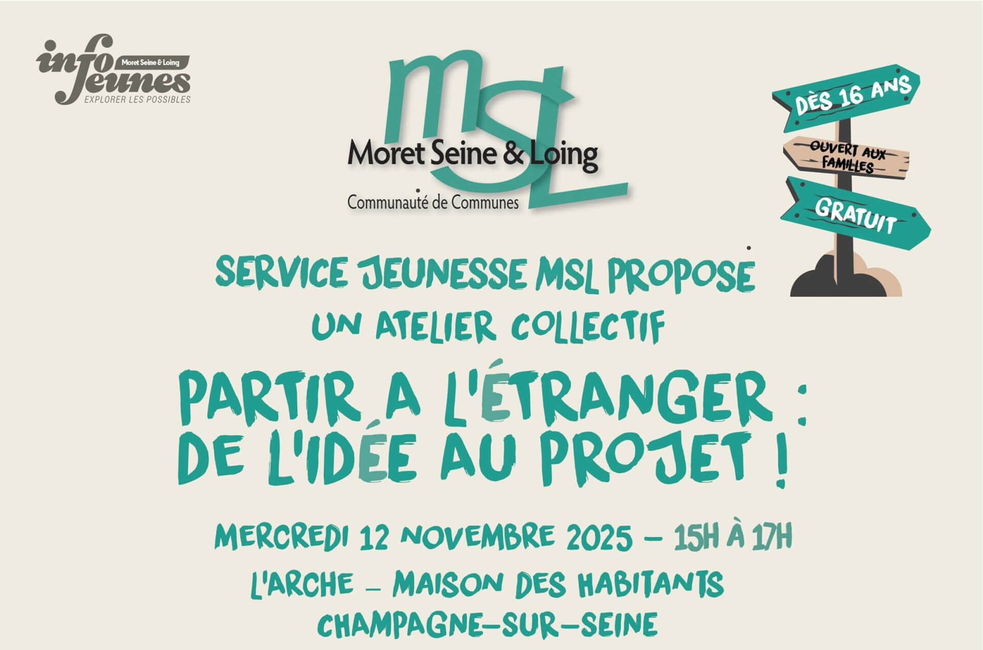 Le Service Jeunesse MSL organise un atelier collectif à destination des jeunes à partir de 16 ans qui ont un projet de départ à l’étranger.
